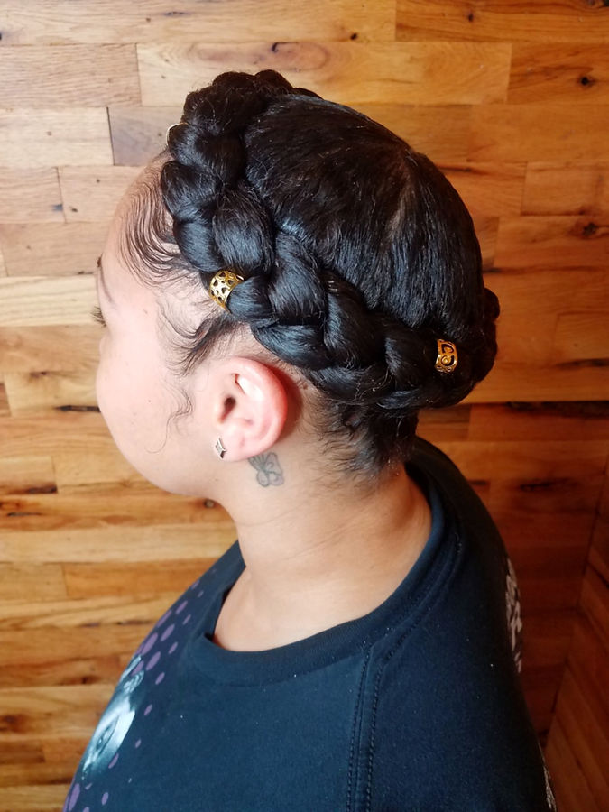 Sleek or Voluminous Hair with a trendy styled braid (french, side, crown, top knot, pony)